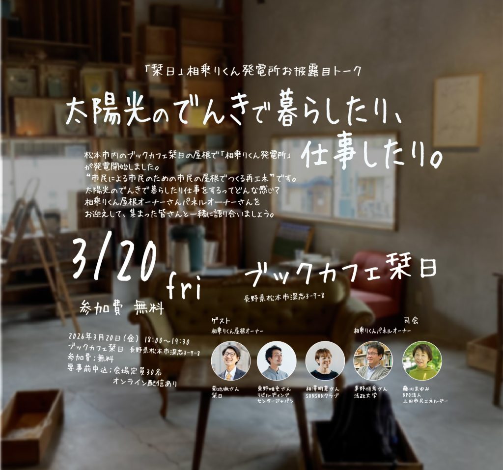 【3月20日・松本/オンライン】「栞日相乗りくん発電所お披露目トーク」